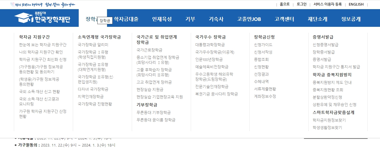 2024년 1학기 국가장학금 신청 기한 => 2023년 11월 22일 (수) 9시~12월 27일 저녁 6시까지