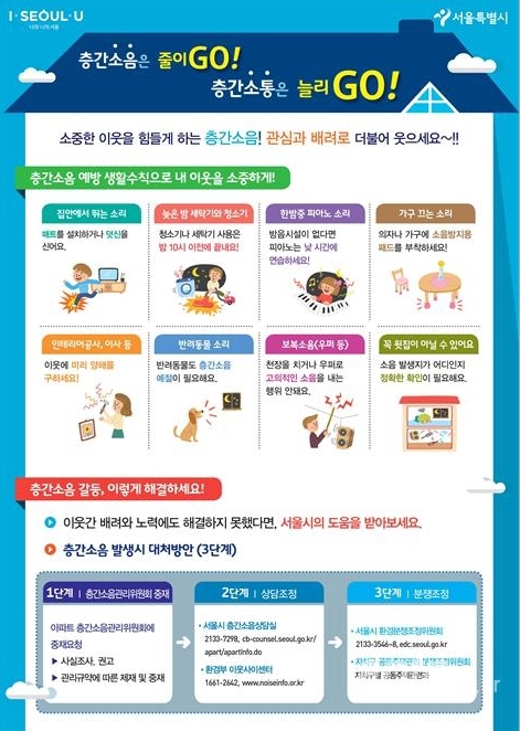 이에 한국환경공단에서는 공동주택 입주자간의 층간소음을 중재할 수 있는 "층간소음이웃사이센터"를 개설하였다. 이곳에서는 전화상담 및 현장진단을 통해 이웃간의 분쟁 및 의견을 조율한다고 한다.