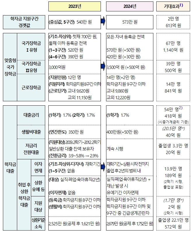 2024년도 학자금 지원 확대 / 학자금 대출 금리 동결